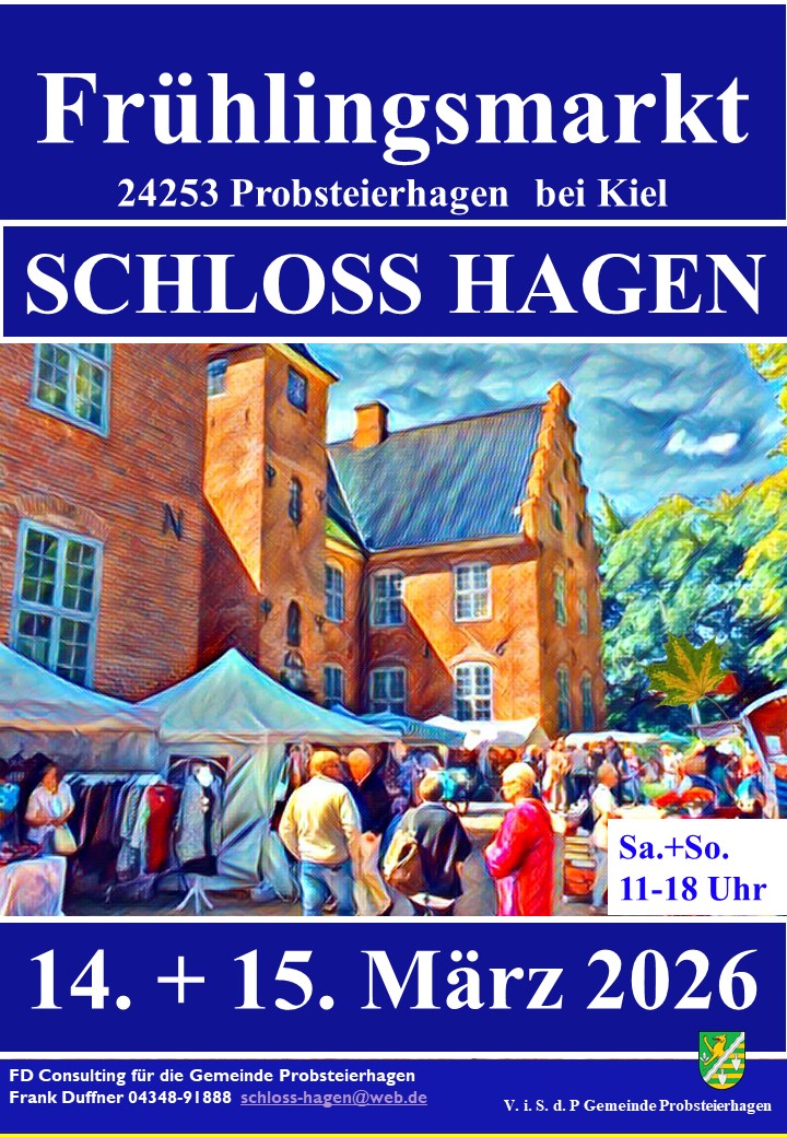 Schloss Hagen Schlossstr. 16, Probsteierhagen, DeutschlandProbsteierhagen, 14.–15.03.2026 – Mit dem Frühling erwacht nicht nur die Natur, sondern auch die Vorfreude auf exklusive Erlebnisse. Ein Highlight der Region ist der traditionelle Frühlingsmarkt auf Schloss Hagen, der am 14. und 15. März 2026 erneut Besucherinnen und Besucher aus Nah und Fern anlockt. Das historische Schloss und seine weitläufige Parkanlage verwandeln sich an diesem Wochenende in ein buntes Paradies voller Kunst, Genuss und Inspiration. Florale Pracht und exklusive Handwerkskunst Über 50 ausgewählte Aussteller präsentieren im festlichen Innen- und Außenbereich ihre handgefertigten Produkte. Der Schwerpunkt liegt in diesem Jahr besonders auf stilvollen Dekorationsstücken für Haus und Garten sowie auf individueller Mode und Accessoires. Ein besonderes Highlight: Frühlingsblumen und florale Gestecke sind direkt vor Ort erhältlich und laden dazu ein, die Frühlingsfrische mit nach Hause zu nehmen. Das vielfältige Angebot bietet den perfekten Rahmen zum Stöbern, Entdecken und Verweilen. Kulinarische Vielfalt und moderne Genüsse Doch nicht nur für das Auge gibt es viel zu erleben, sondern auch für den Gaumen. Auf dem idyllischen Schlossvorplatz verführen kulinarische Köstlichkeiten die Sinne. Neben klassischen Herzhaftigkeiten wie saftigen Burgern, deftiger Erbsensuppe und Bratwurst sowie süßen Crêpes bereichern in diesem Jahr frisch zubereitete vegane Wraps das Angebot. Wer eine entspannte Auszeit sucht, kann im gemütlichen Kaminsaal bei einer Tasse Kaffee sowie einer feinen Auswahl an Kuchen und Torten verweilen und die herrschaftliche Atmosphäre genießen. Momente der Ruhe im Schlosspark Abseits des geschäftigen Treibens lädt der weitläufige Schlosspark Paare und Genießer zu einem inspirierenden Spaziergang oder einer entspannten Pause unter blühenden Sträuchern und alten Bäumen ein. Hier können Besucher die frische Frühlingsluft genießen, zur Ruhe kommen und die besondere Kulisse des historischen Schlosses auf sich wirken lassen. Der Eintritt kostet lediglich einen symbolischen Euro, während Jugendliche unter 18 Jahren kostenfrei teilnehmen können. Die Gemeinde Probsteierhagen freut sich auf zahlreiche Besucher und lädt herzlich dazu ein, den Frühling auf Schloss Hagen in vollen Zügen zu genießen.